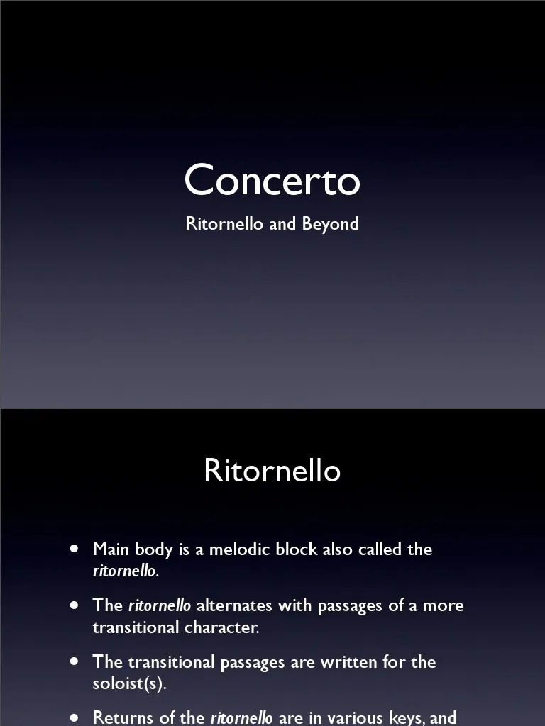 A Ritornello Form In A Concerto Is Typically Found In - Web unlock the secrets of baroque music with ritornello form! Watch this video to learn how this unique musical. Web what is a ritornello in music? Discover the musical genius behind concertos and. Web the _____ form in a concerto is loosely based on the alternation between orchestral statements and virtuosic passages for the. Web table of contents. Web the ritornello form is a musical structure commonly found in baroque instrumental music, especially in.