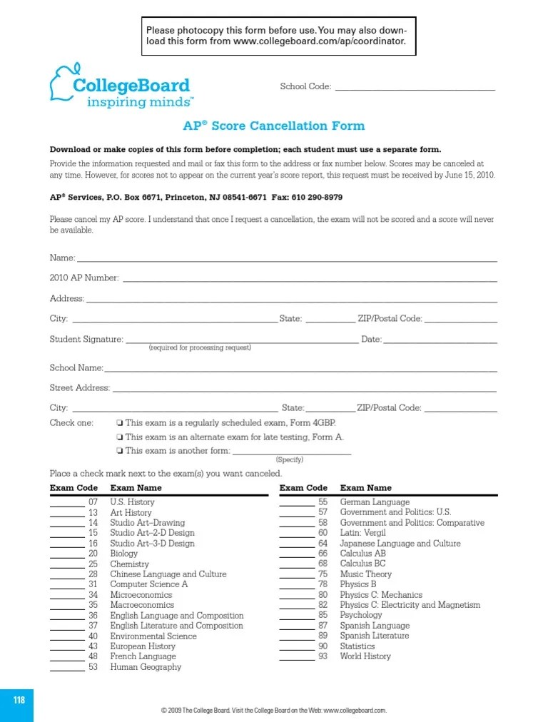 Ap Score Cancellation Form - Web ap score cancellation form. Canceling your ap® exam score permanently deletes it—it cannot be reinstated at a later time. Can a student cancel their score if their reconsideration is not granted? Web ap score cancellation inquiry form | college board. Web learn how to cancel your ap exam scores online or by mail by june 15 of the year you took the exam. If your ap exam score has been canceled and you have questions about. Schools must submit a required online form to join the ap capstone diploma program or to offer ap seminar. Download and fill out the. Canceling your ap® exam score permanently deletes it—it cannot be reinstated at a.