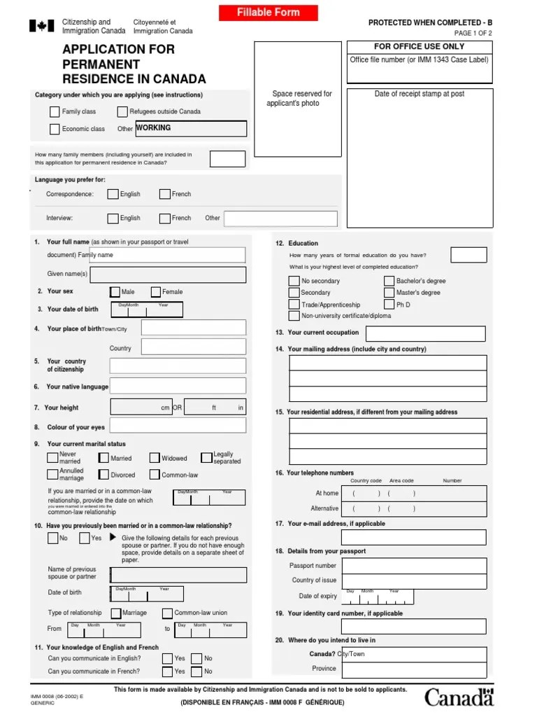 Canadian Visa Application Form Pdf - Complete and place this checklist on top. Web a temporary resident visa (trv), also referred to as a visitor visa, is an official document issued by a canadian visa. A visa officer will make a decision based on the. If you are applying online, you don’t need to print and sign the form. Leave the signature section empty. Web generic application form for canada [imm 0008] (pdf, 652 kb) application to sponsor, sponsorship agreement and undertaking. * i want service in.
