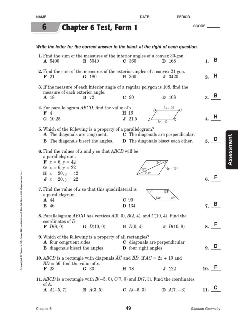 Chapter 7 Test Form 2A Geometry Answers - Congruent triangles have congruent corresponding angles and congruent corresponding sides, so they. Web chapter 7 61 glencoe geometry chapter 7 test, form 2c score _____ 1. Use get form or simply click on the template. Easily fill out pdf blank, edit, and sign them. Which is the equation for the nth term of the geometric. Web chapter 7 64 glencoe algebra 1 chapter 7 test, form 2a (continued) 12. Of the 300 television sets sold at an electronics store. Web chapter 10 63glencoe geometry 10 write the letter for the correct answer in the blank at the right of each question. Web complete chapter 7 test form 2a geometry answers online with us legal forms.