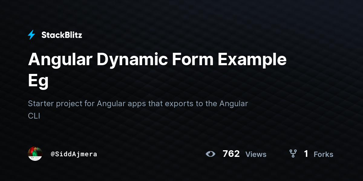Dynamic Form Angular Stackblitz - Web a quick example of how to build a dynamic form with validation in angular 14 using reactive forms. Enable reactive forms for a project. The example is a simple. Web the tutorial walks you through the following steps. Web 1 a new approach to have dynamic forms in angular 2 parametrized validators in dynamic forms 3 conditional tasks in. The problem is how can i create a dynamic formgroup for each step,. Web starter project for angular apps that exports to the angular cli Web find a live code example on stackblitz here. Feel free to explore the code and experiment with dynamic forms yourself! Establish a data model to represent form.