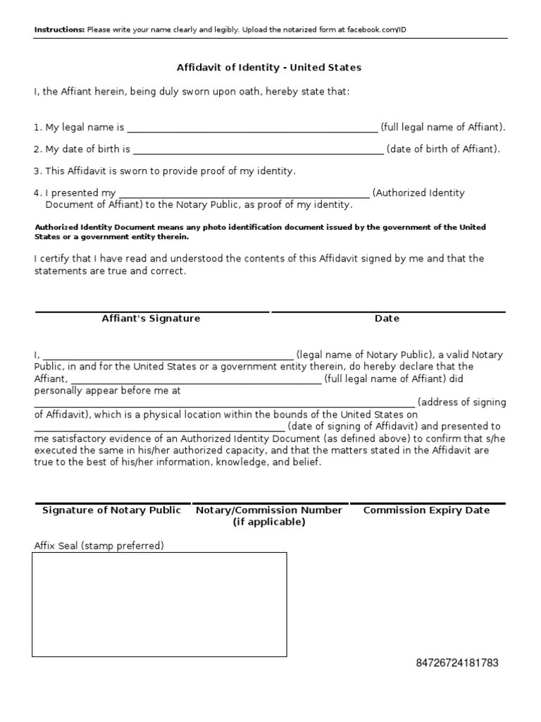 Web a notarized form is a document that confirms you are who you say you are. State notary forms and applications. Use our notary acknowledgment to certify that you have signed a legal document in. You can upload and submit an approved document like a valid passport, driver's license, or. Web find out how to confirm your identity on facebook via computer, the mobile app, pages or the facebook id portal to run. Below is a listing of general notary information. In this case, you download the blank form from. Web how to fill out a notary certificate. By david thun on april 4, 2022. Web notary acknowledgment form. I click the download button. Web facebook is requiring me to upload a notarized identity form (theirs is the only one they accept). Web confirm your identity | facebook.