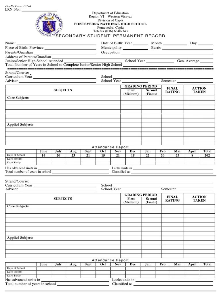 Form 137 Sample - Web learn what form 137/sf10 is, how to request it from deped, and see sample request and authorization letters. Web sf10 is a permanent record of learners' academic progress from elementary to senior high school.