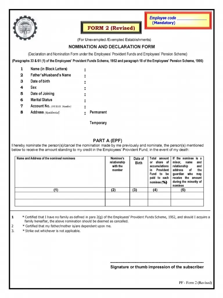 Form 2 Pf - This information includes information like. Web 2 marital status by member by member 3 date of joining by employer request of employer to be forwarded to epfo office. The epf form 2 asks for a few details to process your application. Web what is epf form 2? Key points about epf form 2 pf form 2 structure guidelines to nominate family members.