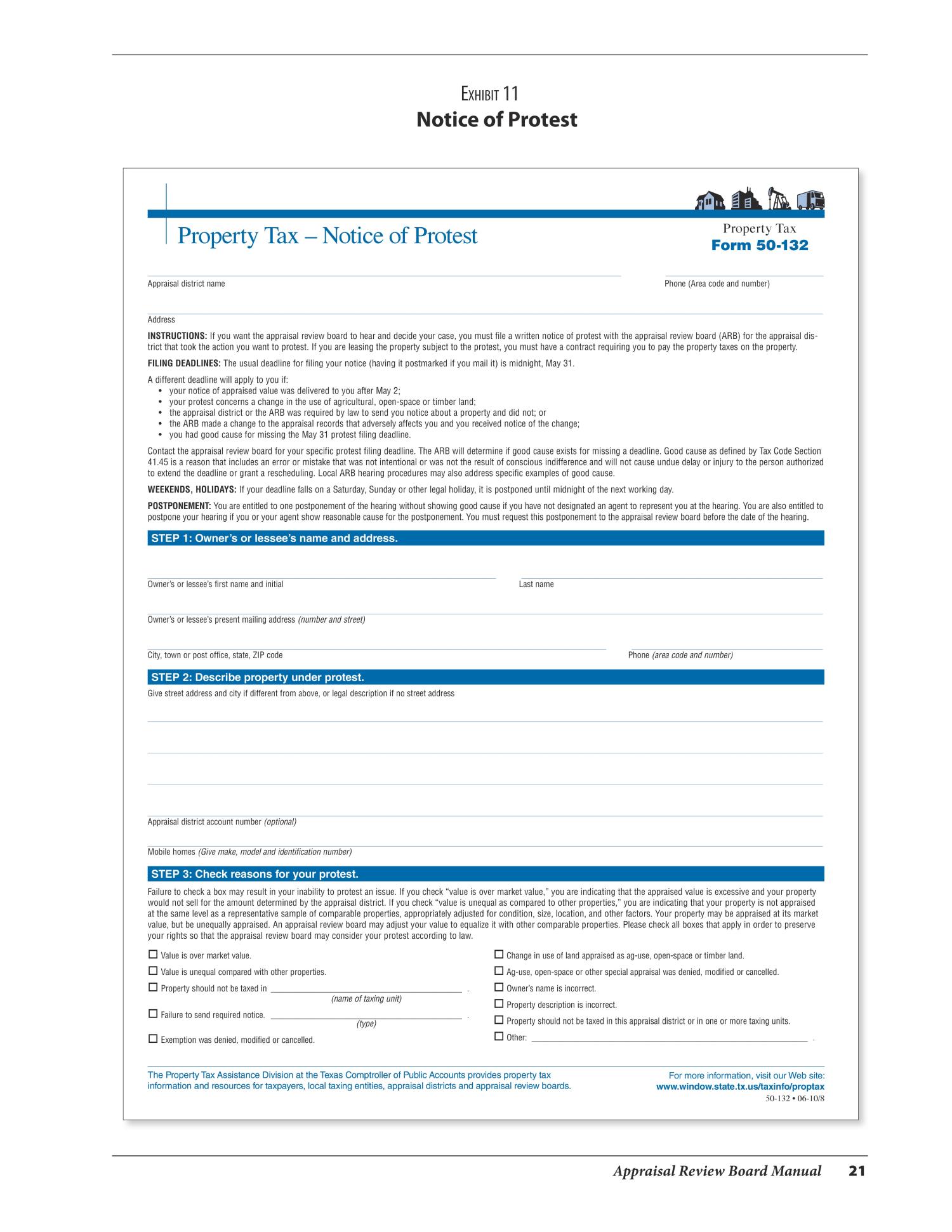 Form 50-132-A - A property owner or an owner’s designated agent can use this. Find out the deadlines, reasons, evidence, and. If you want the appraisal review board to hear and decide your case, you must file a written notice of.