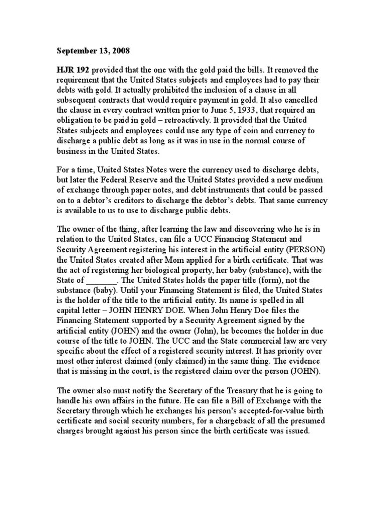 Web hjr 192 could change your financial future. July 28, 2021 16252 view (s) gold investing precious metals silver warning signs. Web as one of the people, the grantors and beneficiaries of the constitution, you have a right of equitable relief because when the. Edit your hjr 192 pdf online. If you are not familiar with. Web remedies from hjr 192 and across the board will be taught in detail. Web here's how it works. Or, jump right to our thorough section on discharging debt. Web foundation of our ability to discharge a debt using a boe is house joint resolution 192 of june 5, 1993. Web house joint resolution 192 73rd congress, sess. Type text, add images, blackout confidential details, add comments,.