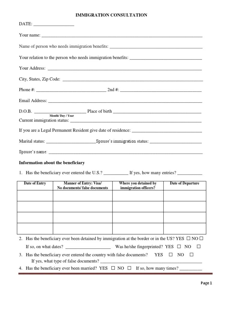 The information you are providing on this form is confidential and is only used for our office purposes. Lpr / visa / undocumented / other: Whether you’re a lawyer practicing in the us or abroad, use this immigration intake form to collect personal and legal information from your clients. Web initial client intake form. If you are unable to pay, please speak to the immigration specialist who will assist you today. Us citizen lawful permanent resident refugee asylee deferred action (daca) temporary protected status (tps) temporary visa type_____ currently applying for status undocumented unknown marital status: Web an immigration intake form is a questionnaire used by immigration lawyers to collect the necessary information for their clients. The initial consultation cost is $ 30. Married widowed divorced separated engaged single. This resource is a comprehensive client intake form meant to assist practitioners in screening for immigration relief options. Web learn how to download and print free fillable immigration forms in pdf format from the official uscis website. Accompanying the intake form are notes to assist practitioners in spotting issues and relief options. If in status, date client received status: