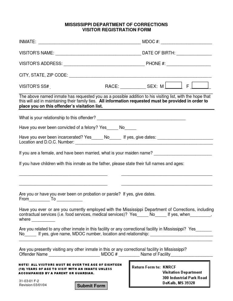 Mdoc Visitation Form - The visiting person(s) must complete the application and mail it to the mdoc address as indicated in the visitor application package. Web inmates are responsible for initiating the visitation application process by sending the application for visiting privileges to persons they wish to see. If a question does not apply, write not applicable on the line. This is an application to visit a prisoner in a michigan correctional facility. All questions in section a and b must be answered. Web instructions for visitors filling out this application. Sign in to schedule and manage upcoming visits with your inmate. Inmate visitation scheduling allows you to skip the long lines by reserving your visitation time. The mdoc recommends using headphones for video visits to eliminate background noise and improve audio quality.