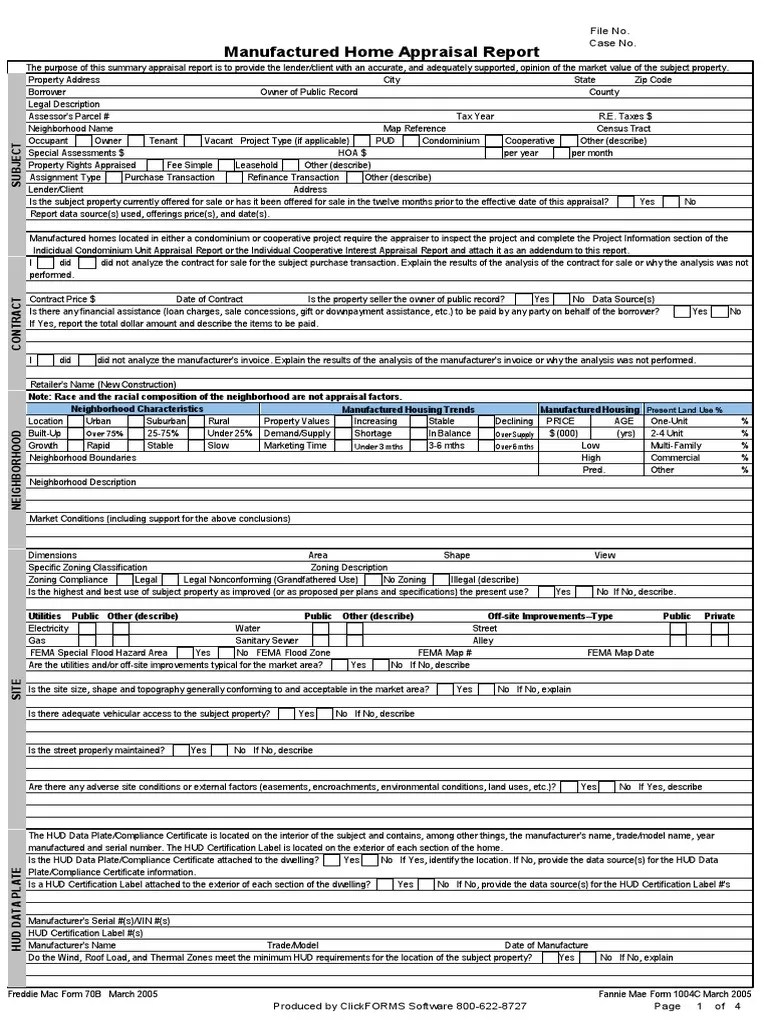 Mobile Home Appraisal Form - This tutorial is a “work in progress.”. If you have an rp decal applied to your. This course addresses topics such as appraisal guidelines, form 1004c (manufactured home appraisal report), and appraising homes that qualify for fannie mae’s mh advantage mortgage. Web an overview of mh advantage® and traditional manufactured home appraisals. An appraiser will visit your mobile home and determine what it’s worth in the current market. In exchange, you'll be able to purchase your decal which remains valid as long as you retain ownership of your home and property. Web what’s a mobile home appraisal?