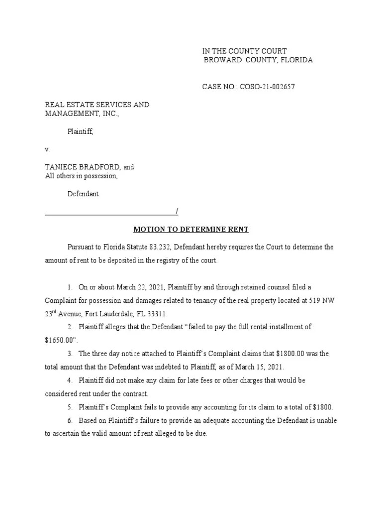 Motion To Determine Rent Florida Form - Web after a tenant is served with an eviction notice in broward or palm beach county, the tenant should file a motion to determine. Web according to florida law and the local florida courts, a tenant must file a verified motion to determine rent and provide. Web within the five (5) day statutory timeframe, the tenant may file a motion to determine rent. Web _____ county, florida case no.: Web motion to determine amount of rent to deposit into registry of court. Web are you a florida tenant that is having issues with your florida landlord regarding payment or are you currently involved in. Web motion to determine amount of rent to deposit into registry of court.