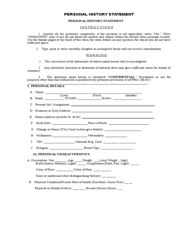 Web form 2982, personal history statement. The personal history statement (phs) is designed to assist public safety agencies. Use the blanks pages at the back of this form for extra details on any question for. Web obtain the answer from personal records. Instructions for opening a form. Web a personal history statement (phs) provides an insight into your academic and professional endeavors. Some forms cannot be viewed in a web browser and. Web personal history statement.