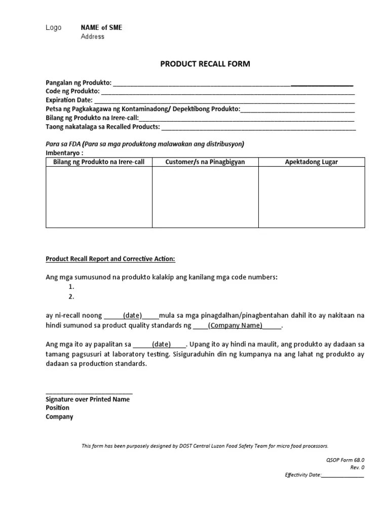 Product Recall Form Pdf - Web industry recall guidance: Web food recall plan template for food manufacturers. Web a food product recall involves steps such as gathering information about the product in question, forming a recall plan, notifying. Name of product to be recalled: Product recalls, including removals and corrections.