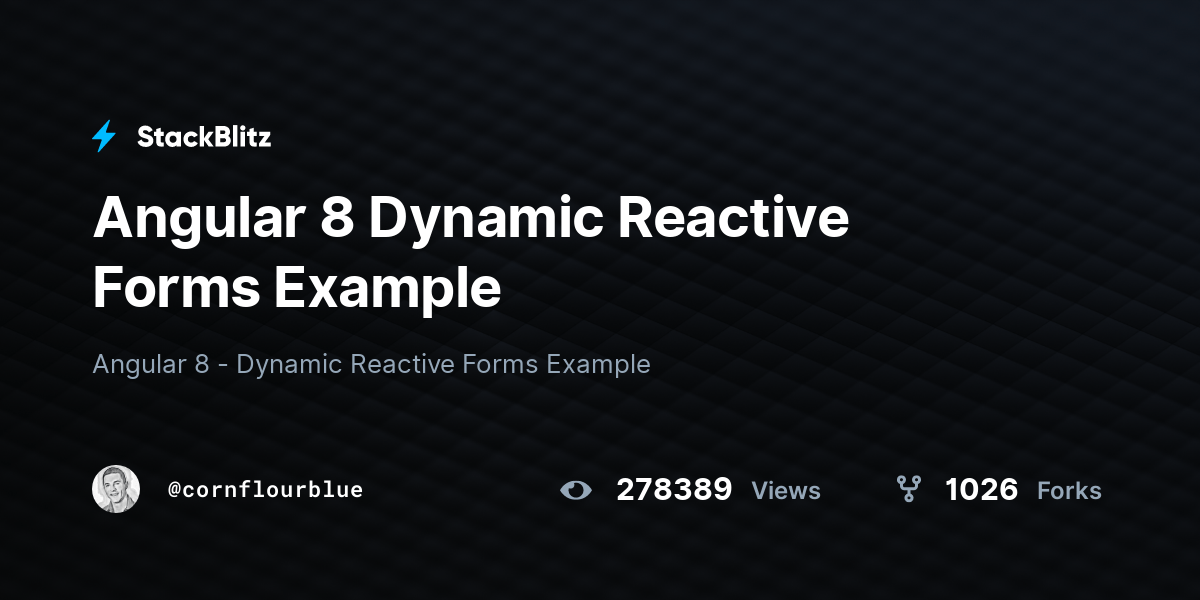Reactive Form Angular Example Stackblitz - Web learn how to create and validate reactive forms in angular with this interactive demo project. Compare your code with the final. Web how to implement validation in angular 14 using reactive forms. We'll examine how to utilize the. Reactive forms are one approach (alongside with. Web we'll learn how to design and use forms in angular 17 by creating a basic contact form example. Web in this tutorial, i will show you how to implement angular 14 form validation example (and submit) with reactive. Includes an example registration form that validates on submit,. Web angular 9/8 reactive forms with validation tutorial by example | techiediaries.