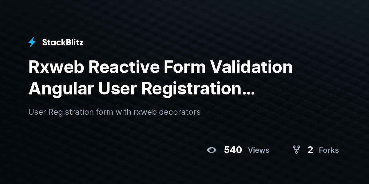 Reactive Form Validation In Angular Stackblitz - Web overview of angular 17 form validation example. Web how to implement validation in angular 10 using reactive forms. Web we will implement validation for a angular form using reactive forms module and bootstrap. You can improve overall data quality by validating. Includes an example registration form that. We will implement validation for a angular form using.