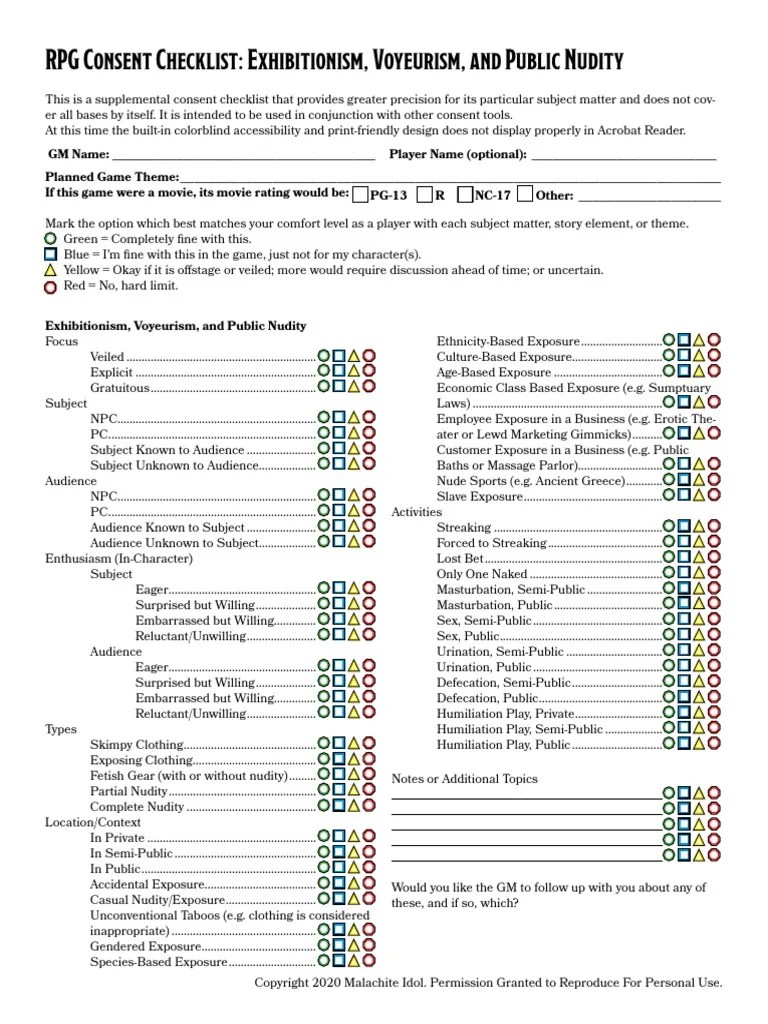 I've whipped up a pretty chunky rpg consent form for use in dnd and other ttrpg's because none of the. Web an rpg consent checklist is an amazing tool to make sure that the gm and players at the table are on the same page in regards to. This is a supplemental consent checklist that provides greater precision for its particular.