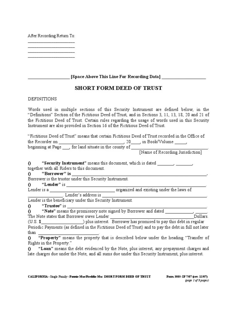 Short Form Deed Of Trust - It transfers the property’s legal title to a neutral third party , the trustee, who holds it until the buyer pays back the lender. Web a deed of trust, also known as a trust deed, is a document used during financed real estate transactions, meaning a buyer borrows money from a lender to buy a property.