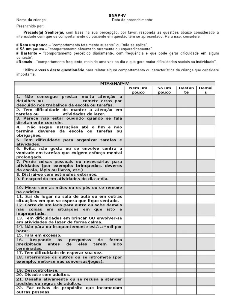 Snap 4 Form - Often avoids, dislikes, or reluctantly engages in tasks requiring sustained mental effort 7. Often does not follow through on instructions and fails to finish schoolwork, chores, or duties 5. This questionnaire is a trusted and widely used rating scale to detect possible attention deficit hyperactivity disorder (adhd). Often loses things necessary for activities (e.g., toys, school assignments, pencils, or books) 8. Often has difficulty organizing tasks and activities 6.