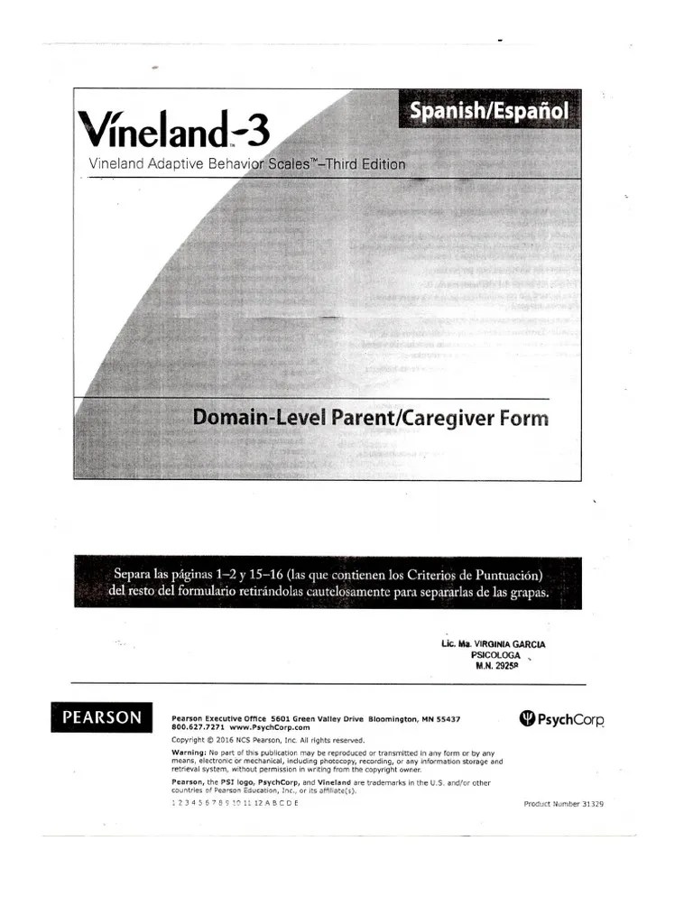 Vineland 3 Parent/Caregiver Form Pdf - Her abc score is 83, which is somewhat. Third revision of the first standardized measure of adaptive behavior, the vineland social maturity scale (vsms) (doll 1935) six versions of this instrument exist : Jennifer's overall level of adaptive functioning is described by her score on the adaptive behavior composite (abc). Sample, jennifer's mother, was interviewed by bonnie kamp, who completed the form.