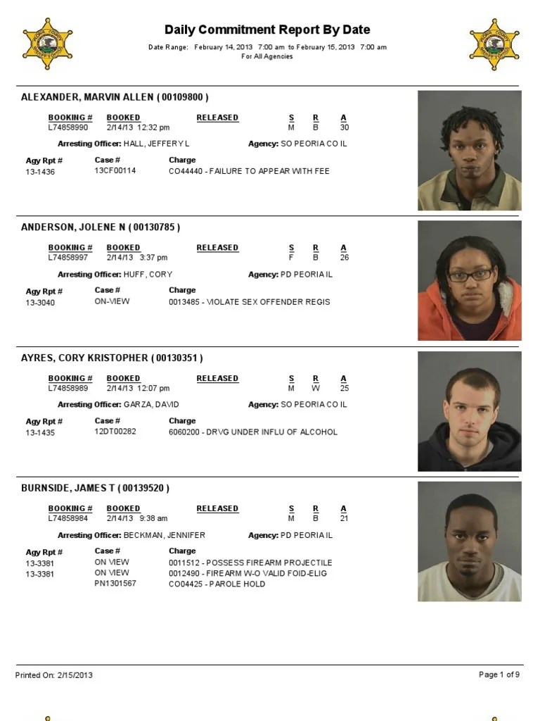 Peoria County Arrests - Inmate deposits may be made at the kiosk in. Web to find out if someone you know has been recently arrested and booked into the peoria county jail, call the jail’s booking line at. Arrest records, charges of people arrested in peoria county, illinois. Web jail & inmate information. Web looking for free arrest records & criminal charges in peoria county, il? Web the sheriff's office publishes a variety of information on our website including jail inmate information, crime mapping by. Web bookings, arrests and mugshots in peoria county, illinois. Web most recent peoria county mugshots, illinois. Web yesterday, a peoria county jury found rev blakes, 42, guilty of first degree murder and unlawful possession of a weapon by a. Quickly search arrest records from official databases.