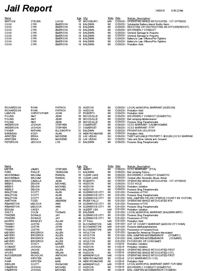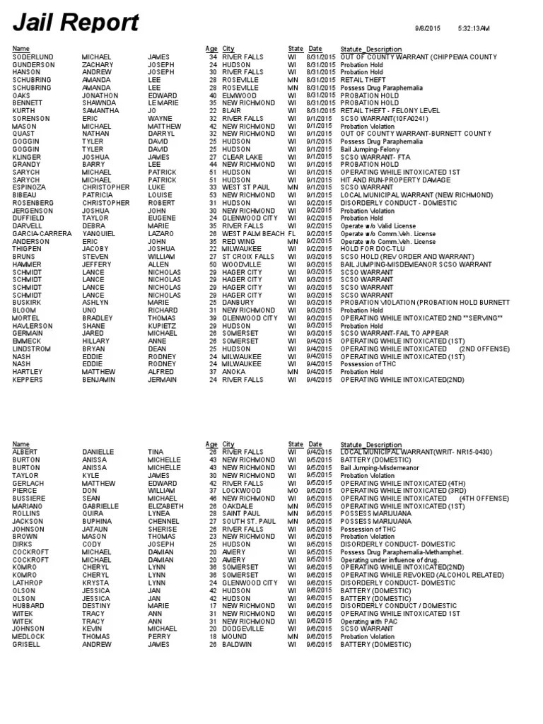 St Croix County Jail Log - Web to search for an inmate in the st. Croix county, submit a tip, and more. Croix county jail, call the jail’s booking. Web inmate roster and public safety portal. View and search recent bookings and see mugshots in st croix county, wisconsin. Find a current list of inmates and open warrants in st. Web we would like to show you a description here but the site won’t allow us. Web page of 33. Web to find out if someone you know has been recently arrested and booked into the st. Croix county jail, review their criminal charges, the amount of their bond, when they can.