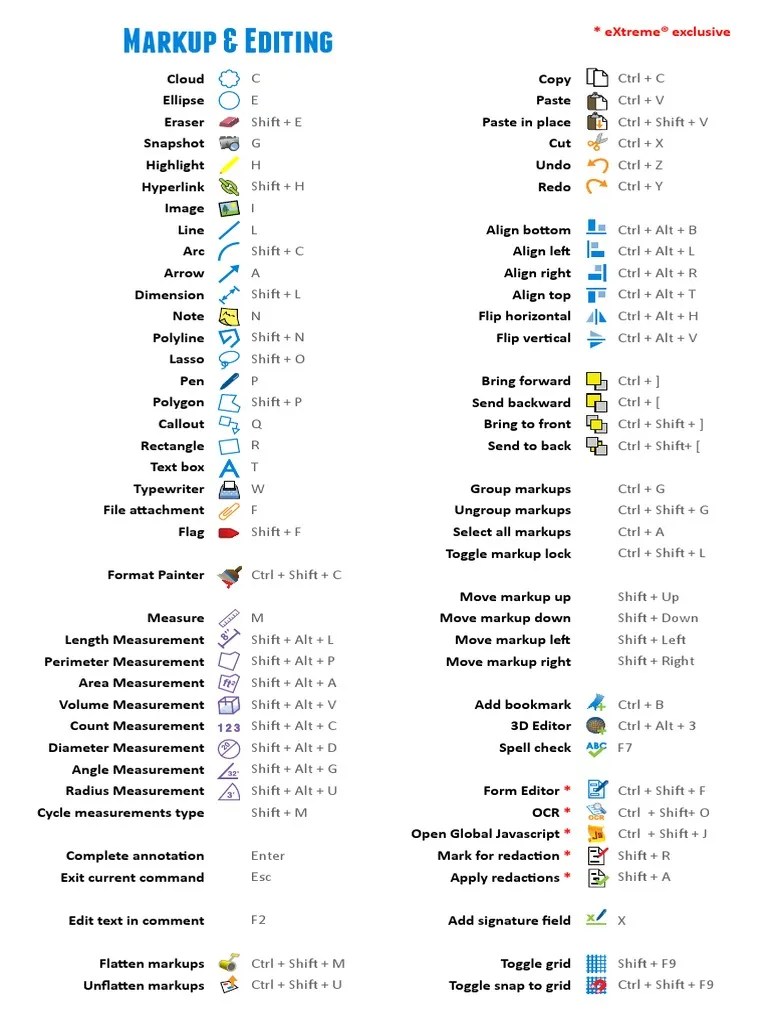Bluebeam Shortcuts Cheat Sheet - Web bluebeam revu shortcuts no. Web this guide lists the various keyboard shortcuts available in revu 2019. Action windows shortcuts section 103 thumbnails tab alt + t show tabs shortcuts 104 tool chest tab alt + x show tabs shortcuts 105 file€access tab alt + a show tabs shortcuts 106 bluebeam studio alt + c show tabs shortcuts 107 bfx tab alt + k show tabs shortcuts 108 layers tab alt + y show tabs shortcuts Export options for excel, word, and powerpoint aren. How to create custom keyboard shortcuts select revu on the menu bar and click keyboard shortcuts. Measurement tools snap at 45 and 90 degree angles; A full list of the keyboard shortcuts is available by clicking help > keyboard shortcuts guide in revu. Studio display name update isn’t reflected in current or past sessions or projects; In the keyboard shortcuts window, select the tool or command you want to shortcut, enter the keystroke in the shortcut field, and click add. Legend doesn’t show all the markups on a page;
