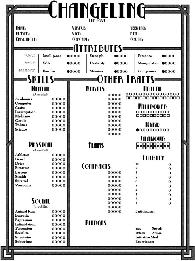 Changeling The Lost Character Sheet - Add to wishlist > zip file. Met sheet for changeling the lost; Interactive met sheet for changeling the. Web chris mrgone leland. Choose 1 free skill specialty in athletics, brawl or stealth;. Web attributes 5/4/3•skills 11/7/4 (+3 specialties) • seeming: