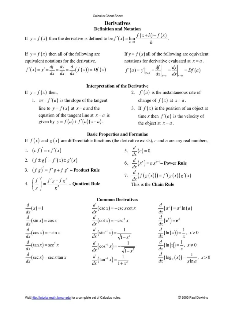 Cheat Sheet For Derivatives - Equivalent notations for the derivative. F x lim h 0. Equivalent notations for the derivative. = ( ) then the derivative is defined to be. ) then all of the following are. ¢ ( ) = ¢= df. ) then all of the following are. ) then all of the following are. ) then the derivative is defined to be. ( f = ) ( ¢ x.