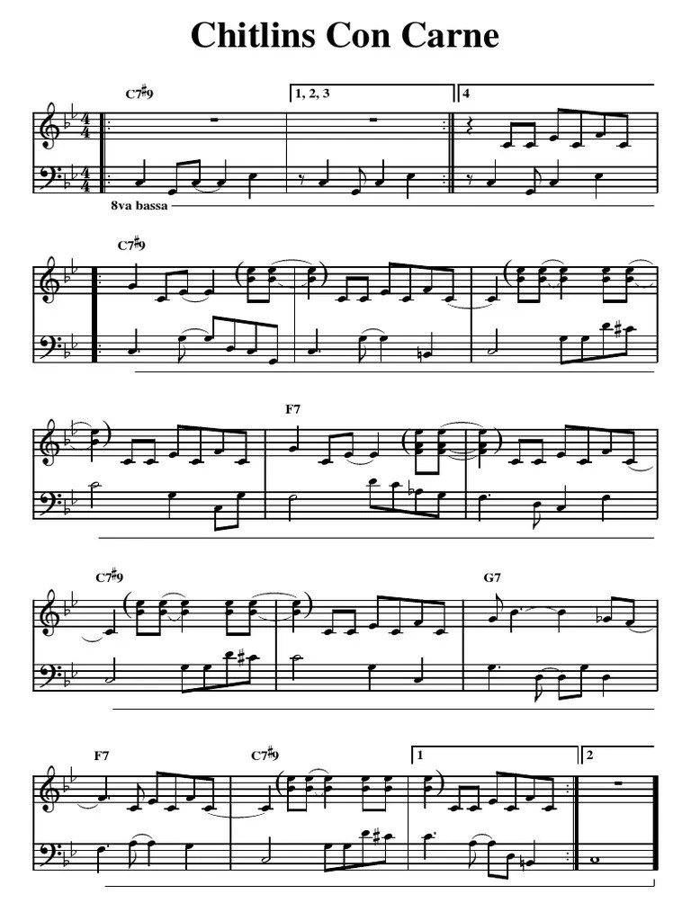 Chitlins Con Carne Lead Sheet - E:\andy archive\data\data partition 25 sept 2010\andy's documents\archive\guitar teaching\scores\sibelius\chitlins.sib. The tune chitlins con carne is a great tune to learn. Web in blues, chitlins con carne on february 4, 2010 at 9:13 am. Web share, download and print free sheet music of chitlins con carne kenny burrell for piano, guitar, flute and more with the world's.