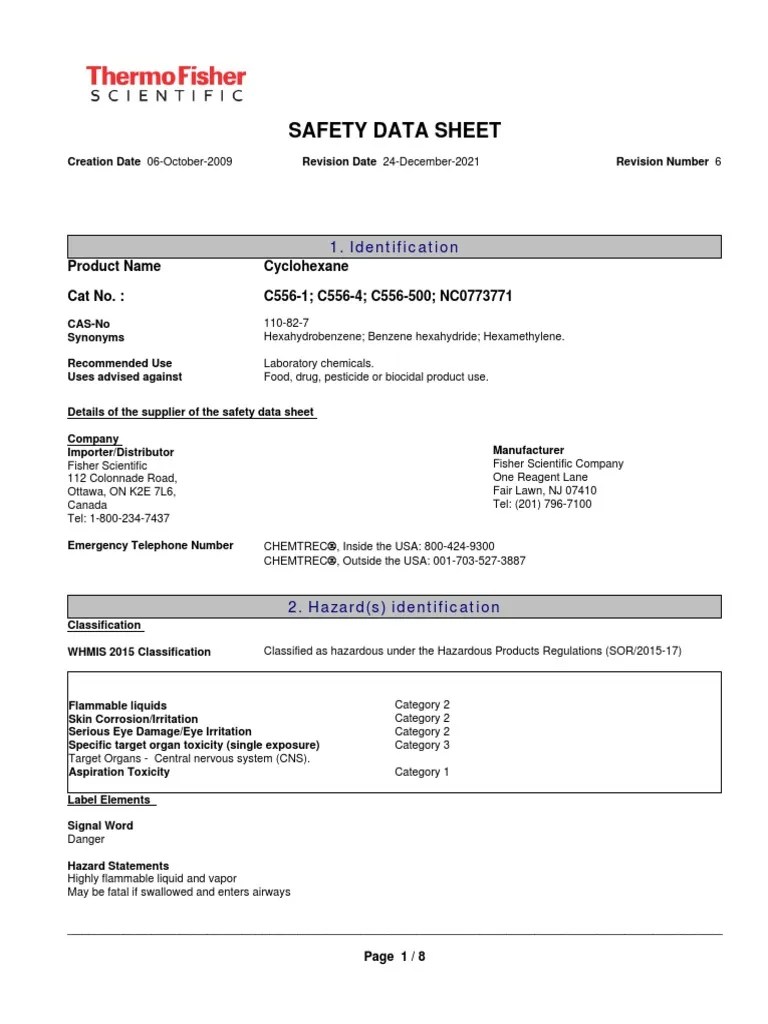 Cyclohexane Safety Data Sheet - Keep away from open flames, hot surfaces and sources of ignition. Consult a physician after significant exposure. Version 6.13 revision date 03/06/2024 print date 04/06/2024. Identification product name cyclohexene cat no. Move out of dangerous area. Material may produce a serious, potentially fatal pneumonia if swallowed or vomited. Show this material safety data sheet to the doctor in attendance. Recommended use uses advised against. Avoid contact with skin, eyes or clothing. First aid measures general advice :