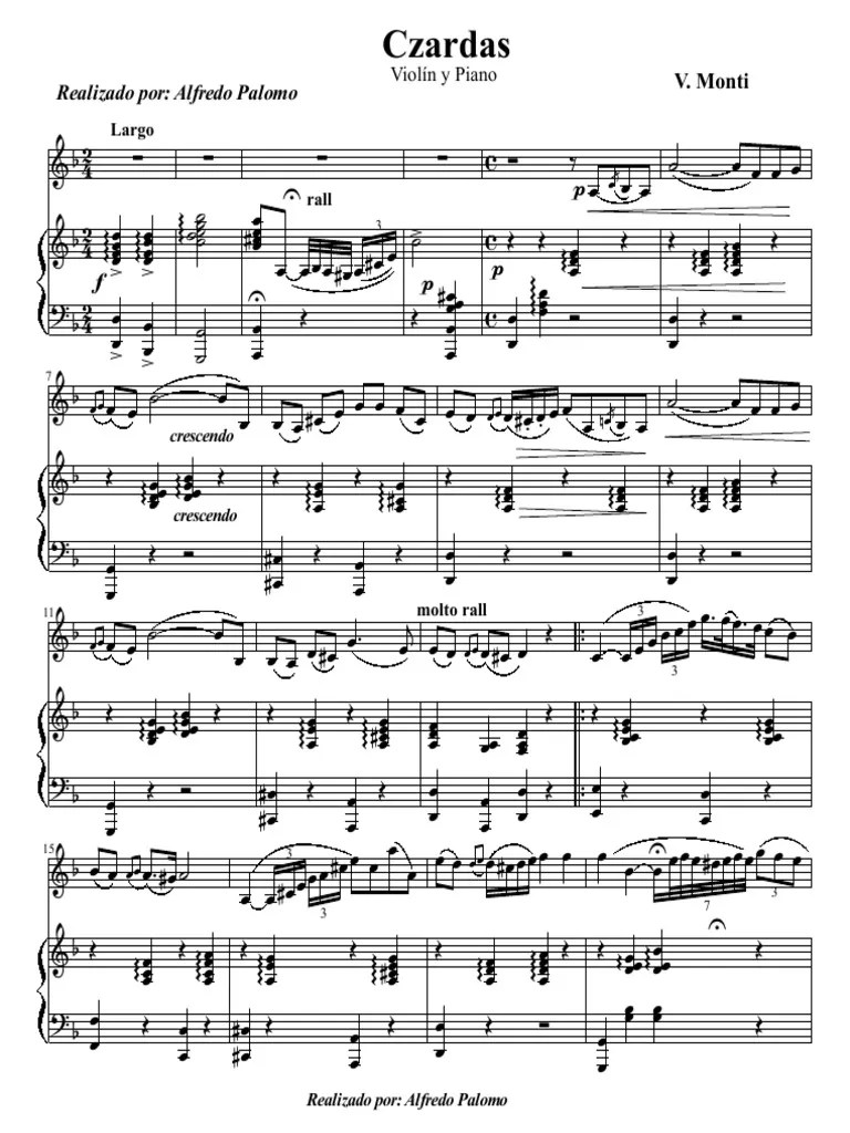 Czardas (Monti) advanced version for accordion MuseScore Kották Czardas by monti for violin and piano.