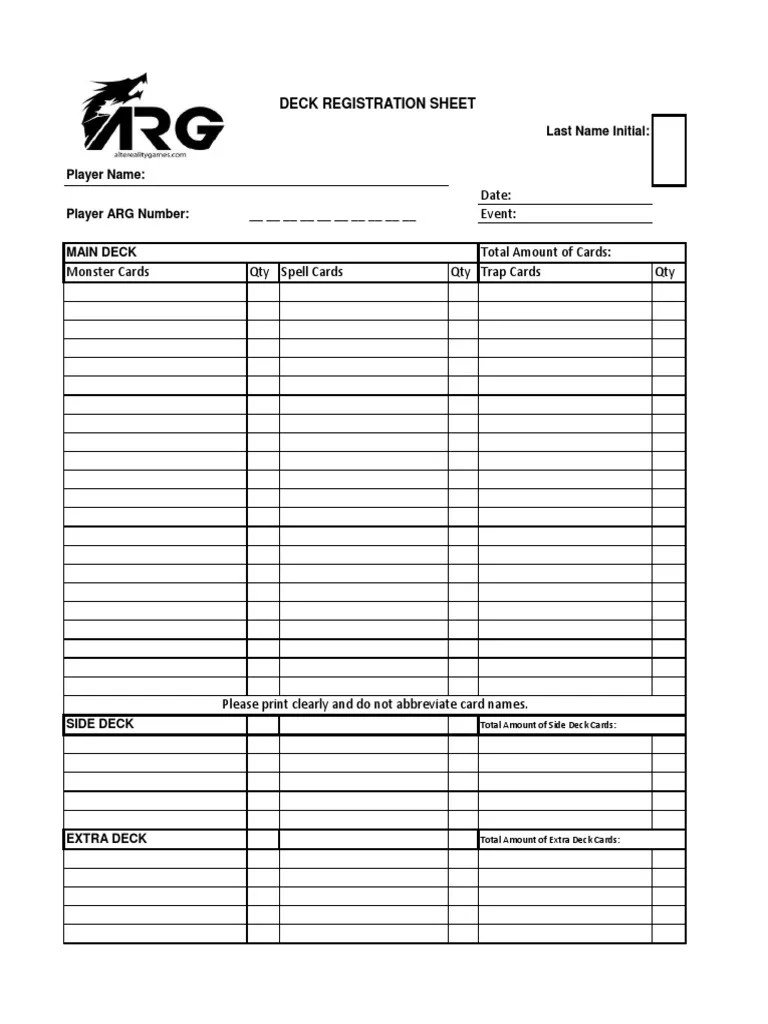 Deck Registration Sheet Mtg - First letter of last name. Fi r st n ame: Welcome to rathe card pool registration sheet (pdf) arcane rising card pool registration sheet (pdf) monarch card pool registration sheet (pdf) tales of aria card pool registration sheet (pdf) uprising card pool. Total numer of cards in. Main deck continued & basic lands: Web deck registration sheet first letter of last name date: Main deck continued & basic lands: Your list will look like others', just much neater. Total number of cards in sideboard: Web constructed deck registration sheet.