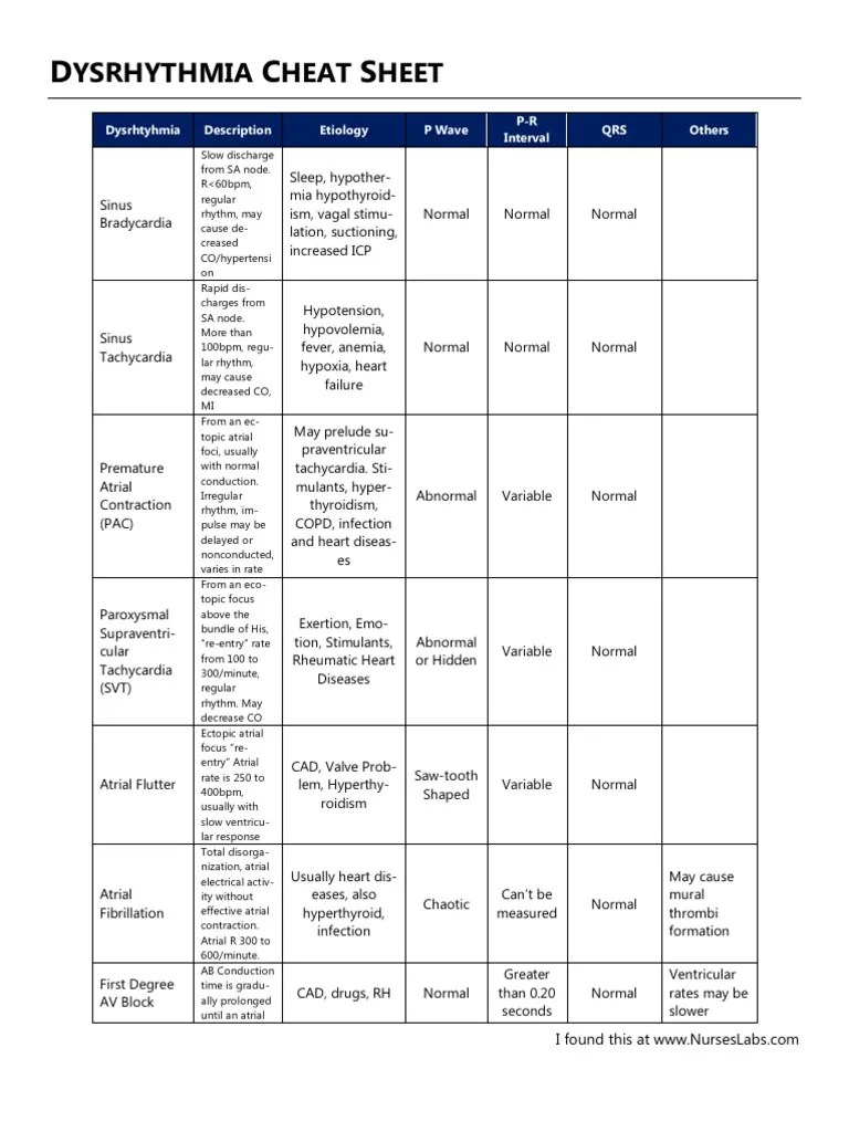 Dysrhythmia Cheat Sheet - Web how to read an ecg. Web this is our online ekg interpretation cheat sheet! Web in clinical nursing practice, key tasks are monitoring cardiac rhythms, recognizing and categorizing. Web basic dysrhythmia cheat sheet. Web find tools and resources for managing arrhythmias such as downloadable sheets, emotional support and more. How to read an ecg. Select a ekg rhythm below to view that abnormal. The electrocardiogram (ecg) provides insights. Click the card to flip 👆. Calculate the atrial rate*, ventricular rate*, pr interval, qrs width, and interpretation for each.