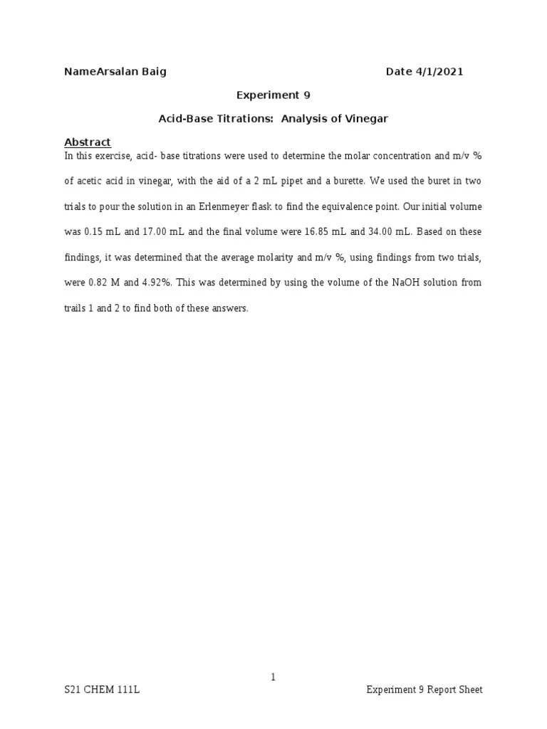 Experiment 9 Report Sheet - 9 report sheet.pdf from che 1811 at metropolitan state university of denver. 9 report sheet.docx 9/28/18 page 1 of 9 experiment 9: The analyte is the substance or solution being analyzed. Report sheet results part 1 activity of. Report sheet results part 1 activity of metals metals with copper(ii) nitrate test metal + cation net.
