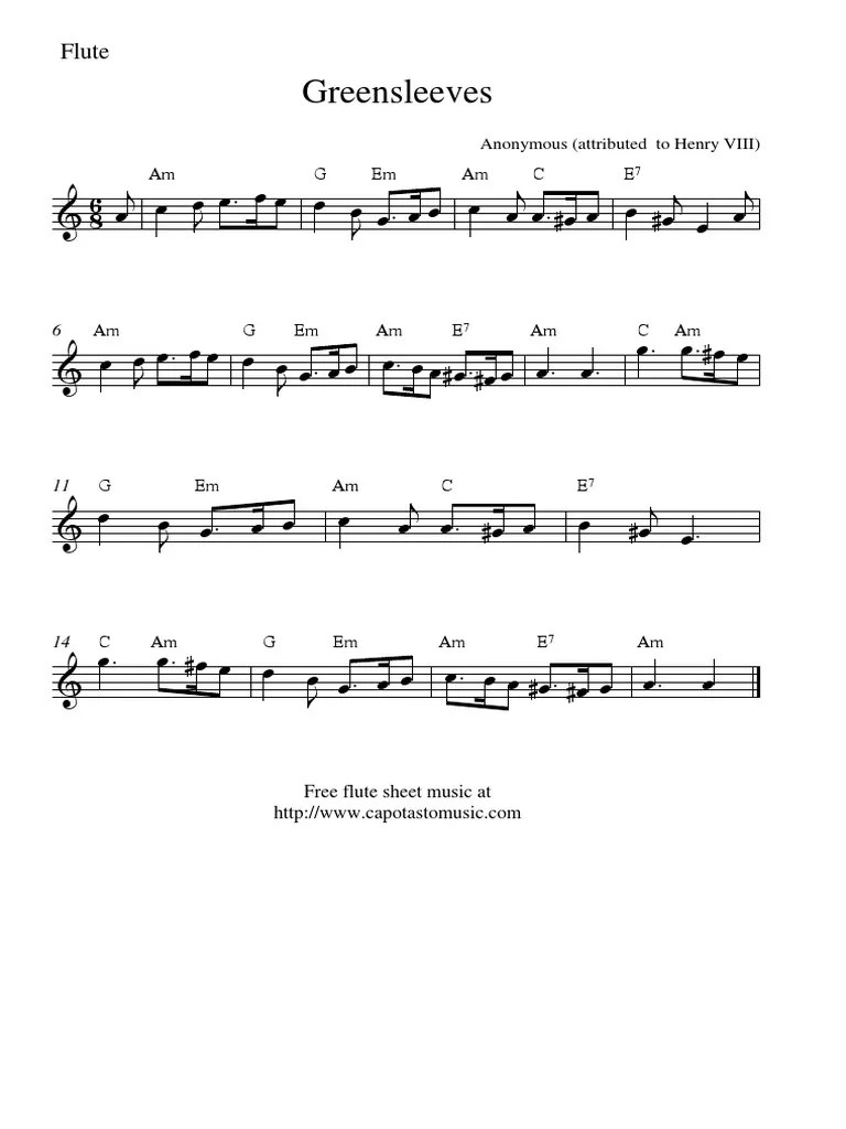 Greensleeves Sheet Music For Flute - Web share, download and print free sheet music of greensleeves misc traditional for piano, guitar, flute and more with the world's.