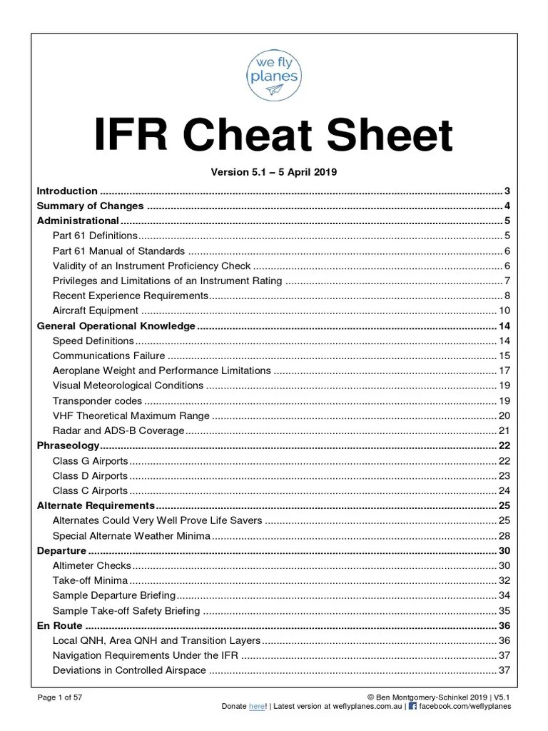 Ifr Quick-Review Sheet Pdf - When is an instrument rating required? 2,000ft above highest obstacle within 4nm of course. Web ifr cruising altitudes (based on magnetic course) (§91.179) ifr mi nimum altitudes minimum prescribed, or if none: (§91.177) ifr minimum fuel requirementsfile (§91.1 67) performance. 1,000ft above highest obstacle within 4nm of course. Under ifr or in weather conditions less than prescribed for vfr.