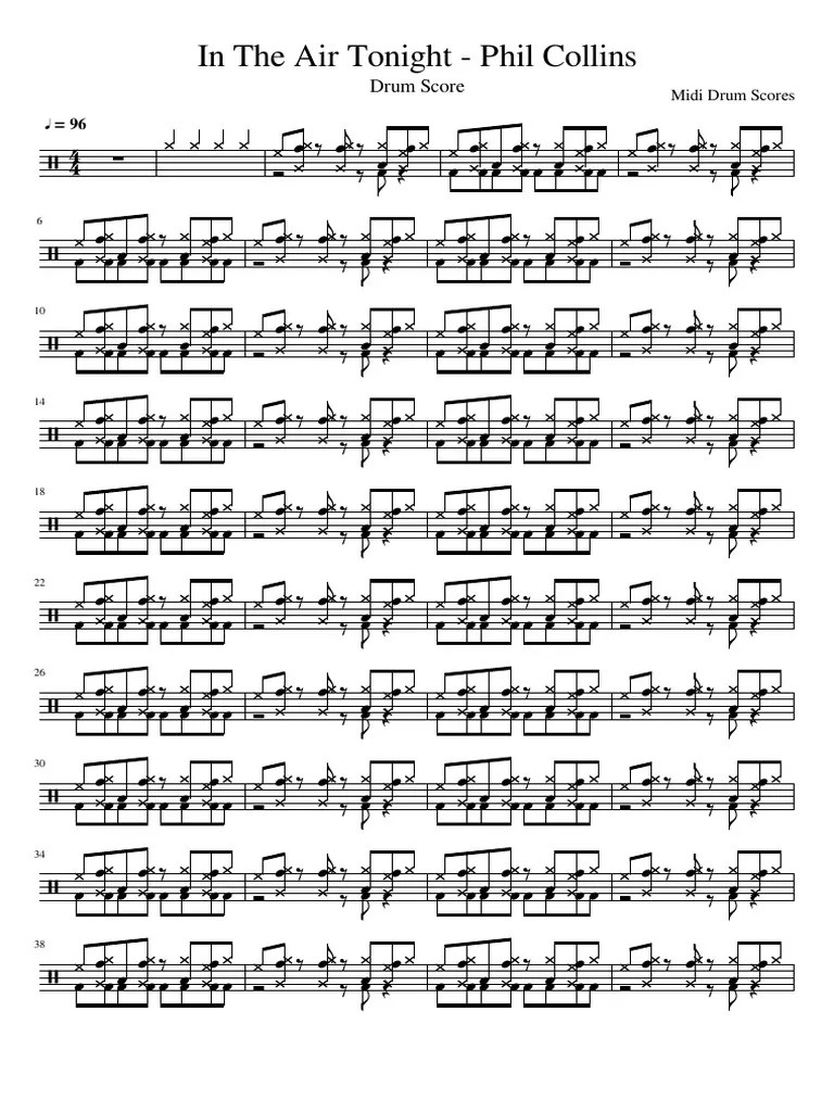 Web download my drum score for “in the air tonight” by phil collins, from his album: Web phil collinsin the air tonightscore for drums2 available versionsclick for instruments. This detailed transcription aims to notate every note that phil collins played on the original recording. View / buy @ sheet music direct. View / buy @ sheet music plus.