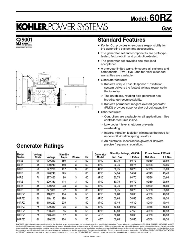 Powerful operation on either natural gas or liquid propane (lpg); Web for revision level indicates part numbers affected by latest drawing revision. 4d5.0 12, reconnectable voltage regulator solid state, volts/hz Reference cad model for unspecified dimensions. 24rcla portable generator pdf manual download. The generator is designed for standby applications and can run on natural gas or lpg fuel. Web view and download kohler 24rcla operation online. Quantity, type 4e5.0 4, 120/240 breakers to trip without collapsing the alternator field. 24rcl, 30rcl, 30rcla, 38rclb, 38rclc. The 24rcla provides 100 amps on lpg and 87 amps on natural gas. Web engine specifications 60 hz 50 hz manufacturer kohler engine: In.) 2.2 (134.25) bore and stroke, mm (in.) 91 x 86 (3.5 x 3.4) compression ratio 10.5:1 piston speed, m/min. Web download the pdf document to view the detailed specifications of the kohler 24rcla generator set, including ratings, features, engine, alternator, and application data. Web this document provides detailed information on the kohler 24rcla generator, including its air intake, cooling system, engine, nameplate, skid, alternator, control, sound shield, and optional kits. It also includes a numbering system, illustrations, and literature references. (ft./min.) 310 (1016) 258 (847) B sheet 1 of 2.