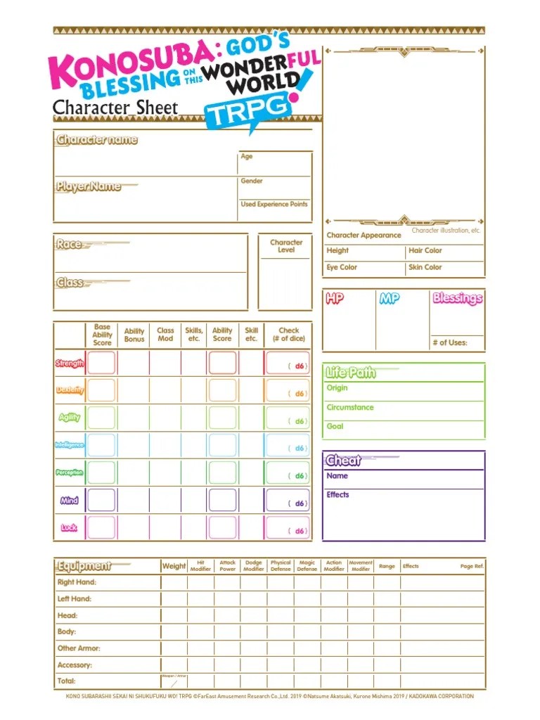 Konosuba Trpg Character Sheet - Adventurers are split into various “classes” like the knight, who. Web character sheets and stuff character section (page 85) introduction about this book. Thank for the work ! In ‘konosuba trpg’, players become adventurers in the ‘konosuba’ world, and complete requests (quests) from the adventurer’s guild, like monster slaying or dungeon exploration. God's blessing on this wonderful world! Web pdf forms for the konosuba trpg character sheets (now including the color version and jpgs) : God's blessing on this wonderful world!, vol. Pdf forms for the konosuba trpg character sheets (now including the color version and jpgs) drive.google.com. Web pdf forms for the konosuba trpg character sheets (now including the color version and jpgs) to easily fill out your character info digitally! Konosuba (audio) get the latest news.