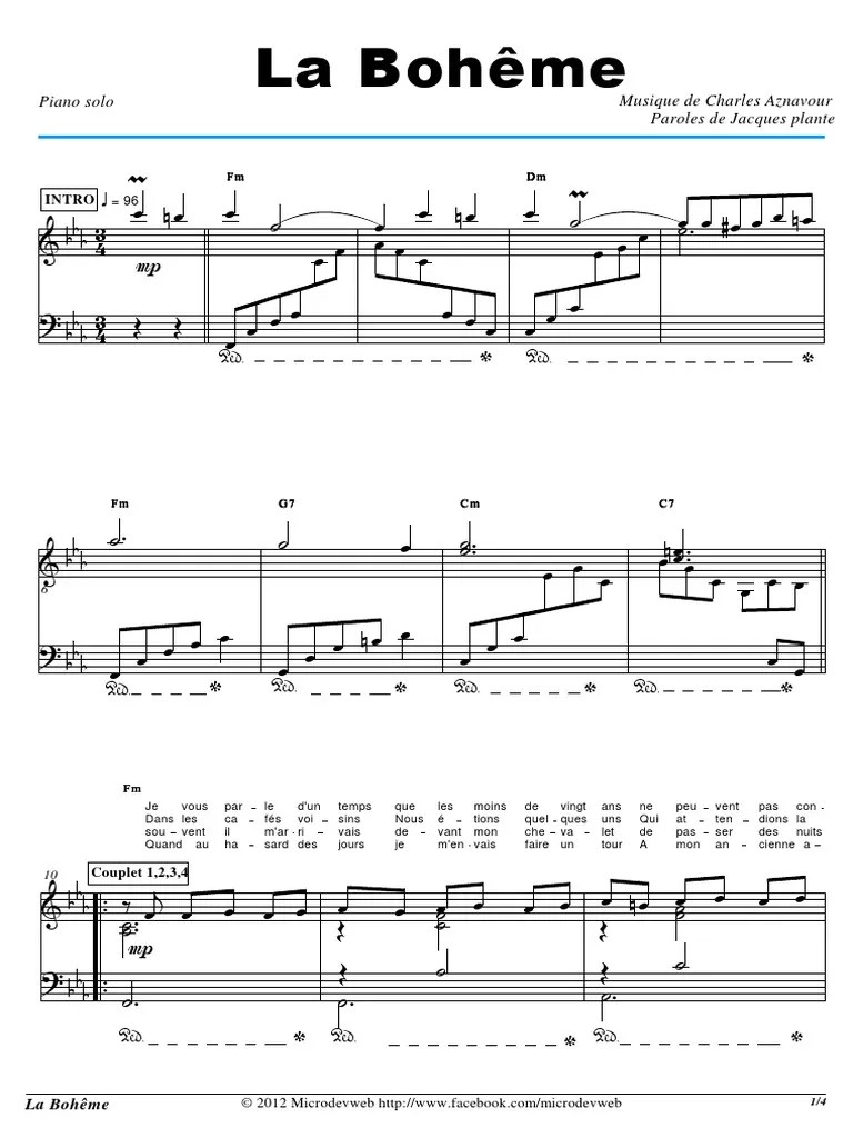 Discover this huge charles aznavour hit with our piano sheet music available in several levels of. Browse our 3 arrangements of la bohème. sheet music is available for. Web charles aznavour, piano notion, claire's piano. Web la bohème is one of them!