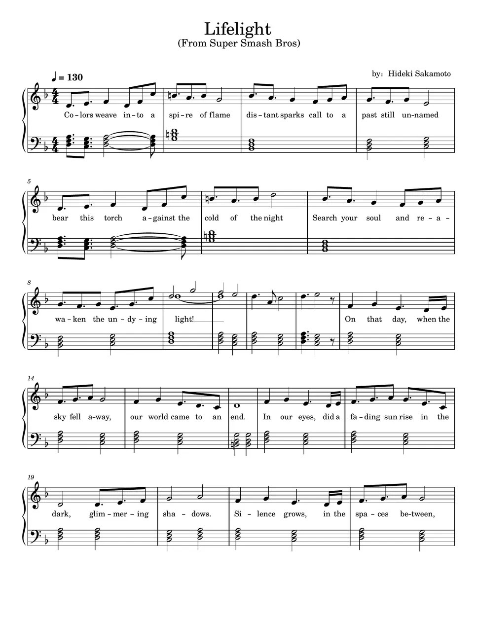 Lifelight Piano Sheet Music - Web lifelight (from super smash bros. View official scores licensed from print music publishers. Web lifelight (from super smash bros. Web this is a simple, easy to play piano arrangement of the main theme of super smash bros. 🎮 search your soul and reawaken the undying light! Web lifelight | super smash bros. Web lifelight simple piano arrangement sheet music for piano (solo) easy | musescore.com. Lifelight (piano and singer) created date: Play the music you love without limits for just $7.99 $0.76/week. Web sheets arranged by tim reichert lifelight (piano and voice) super smash bros ultimate 2 composed by hideki sakamoto 5 voice piano pi.