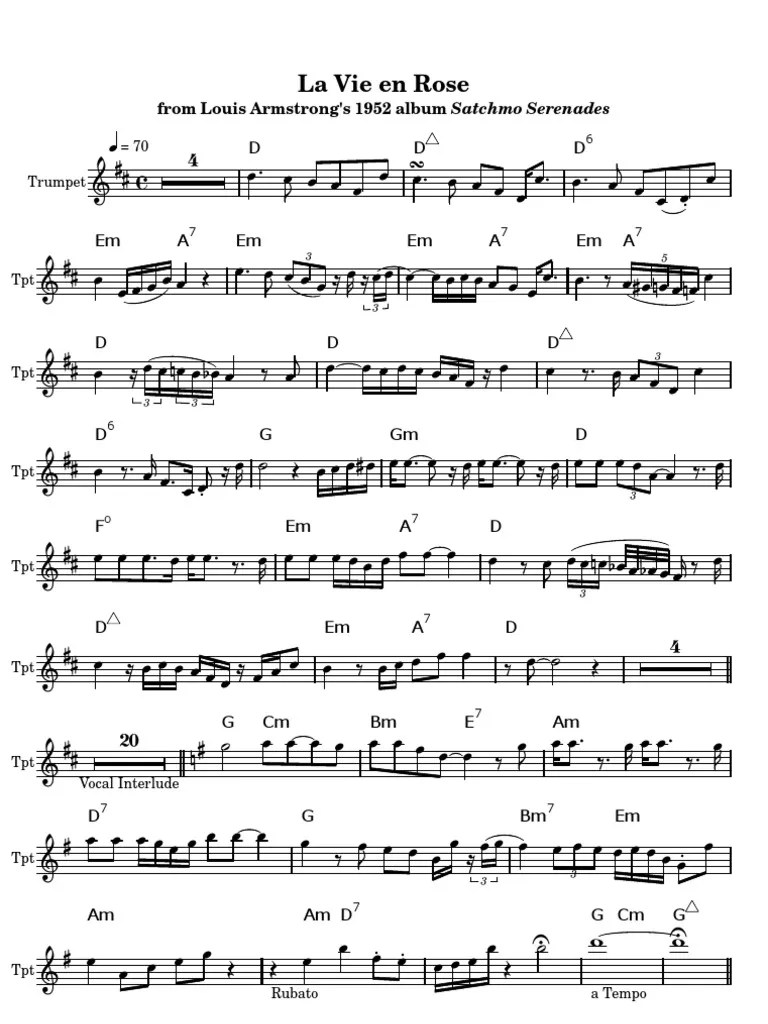 Louis Armstrong La Vie En Rose Sheet Music Trumpet - 93k views 2 years ago. Web la vie en rose louis armstrong trumpet solo. Web la vie en rose digital sheet music. A piece that i love, so i thought i would share the best part of it; Contains printable sheet music plus an interactive, downloadable digital sheet music file. Web download and print la vie en rose (take me to your heart again) sheet music for trumpet transcription by louis armstrong.