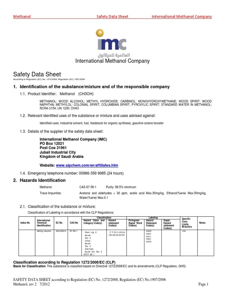 Methanol Sds Sheet - Identification of the substance/mixture and of the company/undertaking identification. Version 8.2 revision date 03/20/2023 print date 04/13/2024. Web safety data sheet us osha hazard communication standard (29 cfr 1910.1200) and canada whmis 2015. Version 6.14 revision date 03/02/2024 print date 04/13/2024. Web safety data sheet _____ section 1: