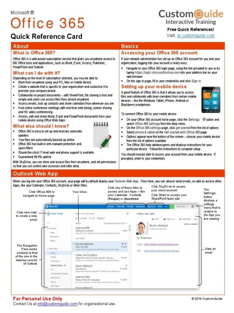 Office 365 Cheat Sheet Pdf - Options appear near the bottom of the screen. Web office 365 can be tricky to learn, but it's not impossible. On your office 365 account home page, click the settings button and select office 365 settings from the drop menu. A cheat sheet (free pdf) as of april 21, 2020, microsoft has officially changed the name of its productivity suite from office 365 to microsoft 365. If you want to customize the effect, select the effect. On the animations tab, select an effect from the gallery. Select the more arrow to see more options. Web to connect office 365 to your mobile device: Web two of these cheat sheets explain how office 365 lets you turn one thing into another — how to turn a word document into a powerpoint presentation and how to turn an office 365 file into a pdf so that people who don’t have office can read it. On the office 365 settings page, click get started from the list of options.