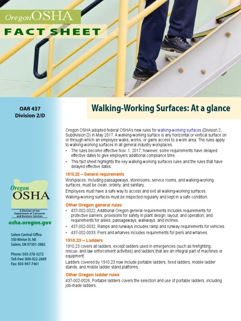 Osha Walking Working Surfaces Fact Sheet Pdf - Web osha standards for walking/working surfaces apply to all permanent places of employment, except where only domestic,.