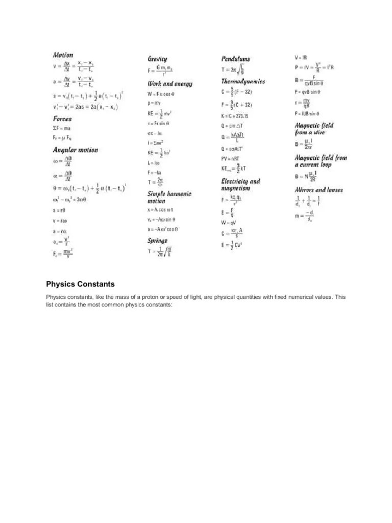 Physics Cheat Sheet - Web 1 m3= 1000 liters 1 atm = 1.01 𝑥𝑥 105pa 1 pa = 1 n/m2. (area of circle a=πr2) physics 101 formulas. Web physics involves a lot of calculations and problem solving. Having on hand the most frequently used physics equations and formulas helps you perform these tasks. Web please do not write on this sheet phhyyssiiccss hffoorrmmuullaa ssheeeett chapter 1: = weight of displaced fluid. Web general physics equation summary sheet. ) = ( (0) +. The nature of science and physics t= − ±√ 2−4 2 Change in pressure with depth = (density) buoyant force flow rate = = 1 1 = 2.