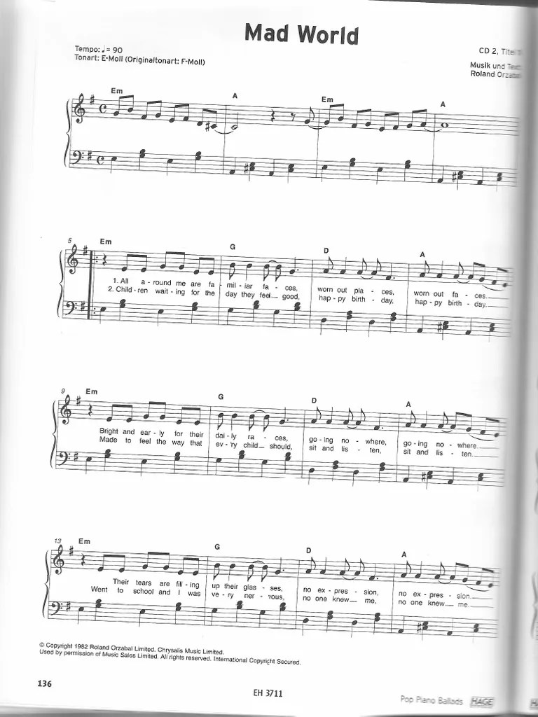 Web download & print mad world [classical version] for piano solo by michael andrews & gary jules. Web browse our 75 arrangements of mad world. sheet music is available for piano, voice, guitar and 31 others with 20 scorings and.