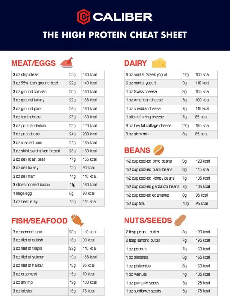 Protein Cheat Sheet Pdf - And it contains all the foods and values listed in this article. Web protein dairy cheese, cream 1 oz 2 cream, light or ½ & ½ 2 tbsp 1 sour cream ½ cup 2.5 yogurt, frozen ½ cup 3 plant/grains beans, green/yellow ½ cup 1 beets ½ cup 1.5 bread, pita, 4 1 each 2.5 bread, wheat, rye, white 1 slice 2.5 broccoli ½ cup 2 brussels sprouts ½ cup 2 Protein is important for your health, appetite, and metabolism. Reference specifics when your fine tuning your plan. This document is totally free! Also, all the foods are listed below, for your reference. Feel free to download this macro cheat sheet in pdf format. Web >>> click here to download your free printable pdf list of high protein foods. Web macro cheat sheet. The macro cheat sheet below shows which foods mostly contain one macronutrient, as well as a combination of macros.