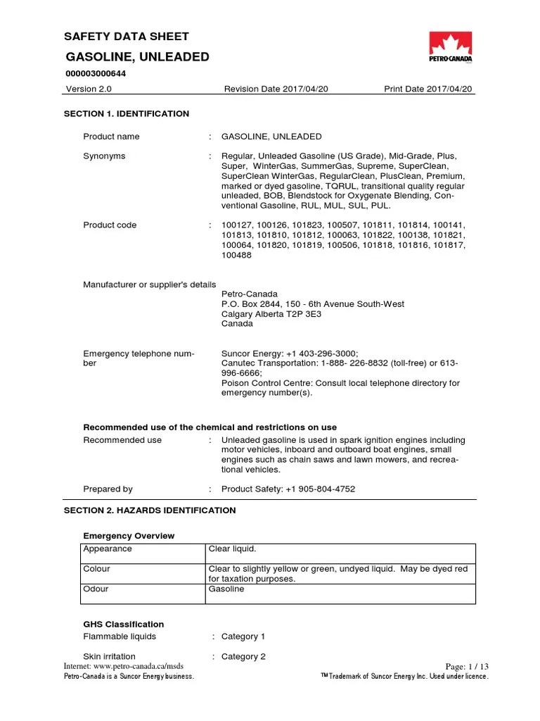 Sds Sheet For Gasoline - Web safety data sheet (sds) conventional gasoline revision date: Web safety data sheet gasoline (all grades) revision date: Web safety data sheet section 1 identification product product name: Gasoline all grades sds no. 58 / monday, march 26, 2012 / rules and regulations revision. 02/19/2021 page 1 of 19 section 1: According to federal register / vol. Hess conventional (oxygenated and non. 02/12/2022 page 1 of 12.