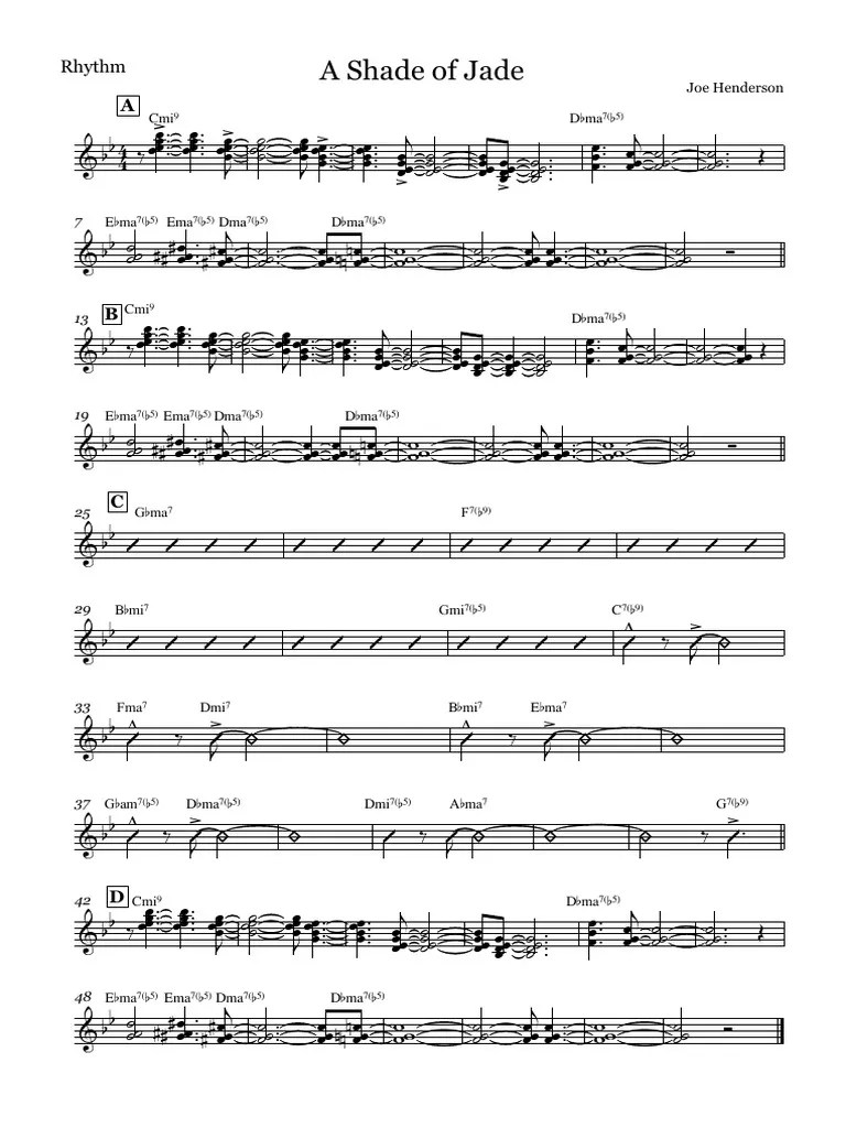 Shade Of Jade Lead Sheet - Web jazz ensemble conductor score & parts. B alto saxophone 2nd e b. Lead trumpet range is up to written high d. B trumpet 3rd b b. This chart cooks every measure. B tenor saxophone 2nd b b. A jazz standard that is a terrific vehicle for your more advanced band with solo space for tenor 1 and drumset. Web shade of jade arranged by alan baylock is high energy swing! Web download and print a shade of jade by joe henderson/arr. Lead trumpet range is up to written high d.