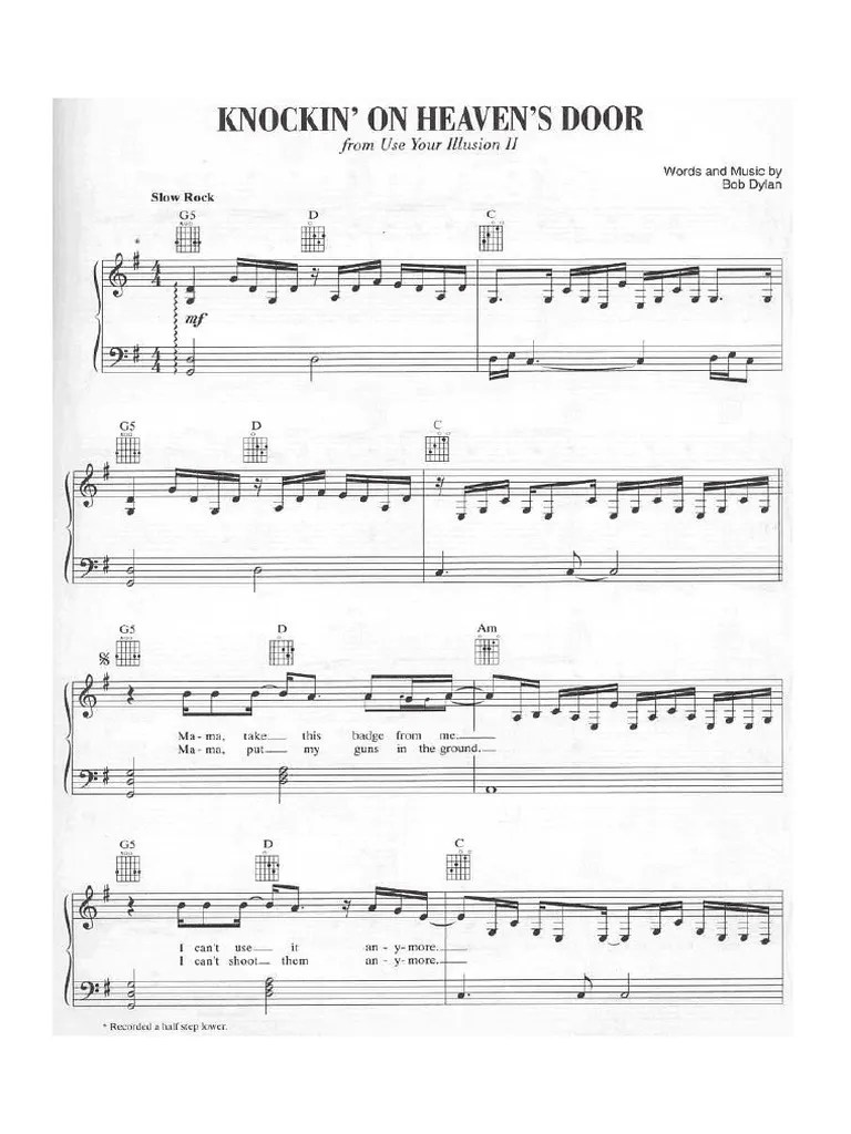 Sheet Music Knocking On Heavens Door - Available at a discount in the digital sheet music collection: Released as a single two months after the film’s release, it became a worldwide hit, reaching the top 10 in several countries. Web download and print knockin' on heaven's door sheet music for easy piano by bob dylan from sheet music direct. Contains printable sheet music plus an interactive, downloadable digital sheet music file. Web browse our 30 arrangements of knockin' on heaven's door. sheet music is available for piano, voice, guitar and 11 others with 13 scorings and 5 notations in 20 genres. Knockin' on heaven's door digital sheet music. “ knockin’ on heaven’s door ” is a song by bob dylan, written for the soundtrack of the 1973 film pat garrett and billy the kid. Contains printable sheet music plus an interactive, downloadable digital sheet music file. Find your perfect arrangement and access a variety of transpositions so you can print and play instantly, anywhere. Web knockin' on heaven's door digital sheet music.